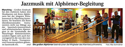 Das AlphornTrio ist Teil unserer Band "Weiswurschtis" und sorgt dort mit fetzigen Alphorn-Medleys für besondere Highlights, kann aber auch separat für eigene Anlässe gebucht werden.