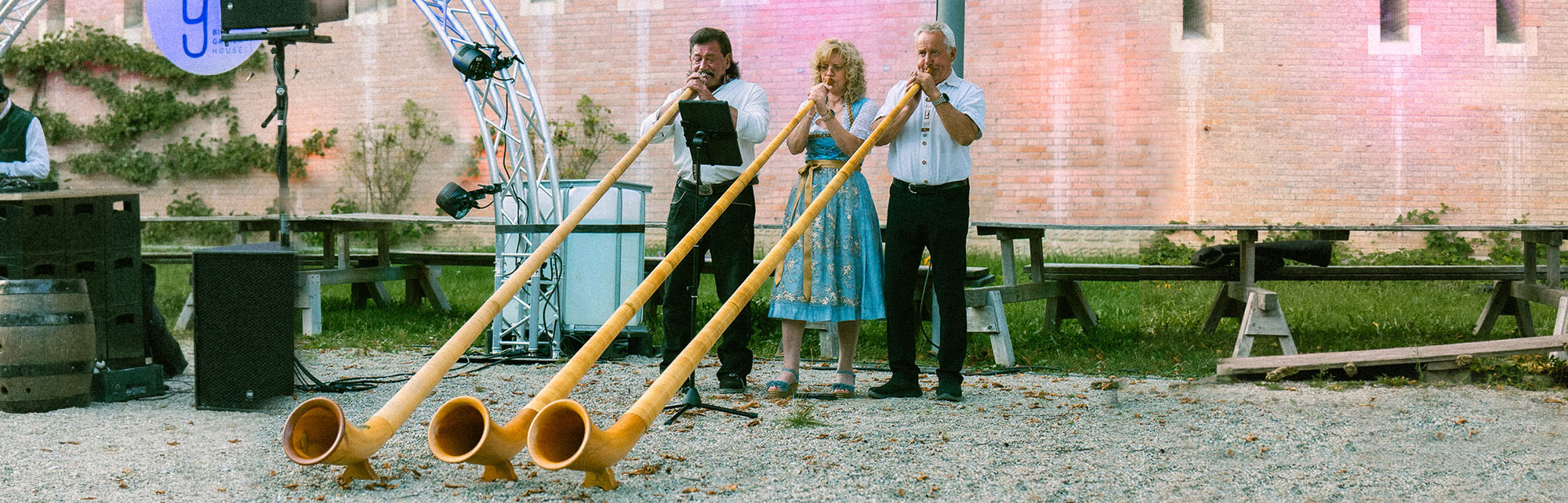 Unser Alphorn Trio bringt den einzigartigen, majestätischen Klang der Alpen zu Ihrer Veranstaltung. Ob Bergfest, Hochzeit, Firmenfeier oder kulturelles Event - mit dem warmen, erdigen Ton unserer Alphörner schaffen wir eine Atmosphäre, die berührt und verbindet.